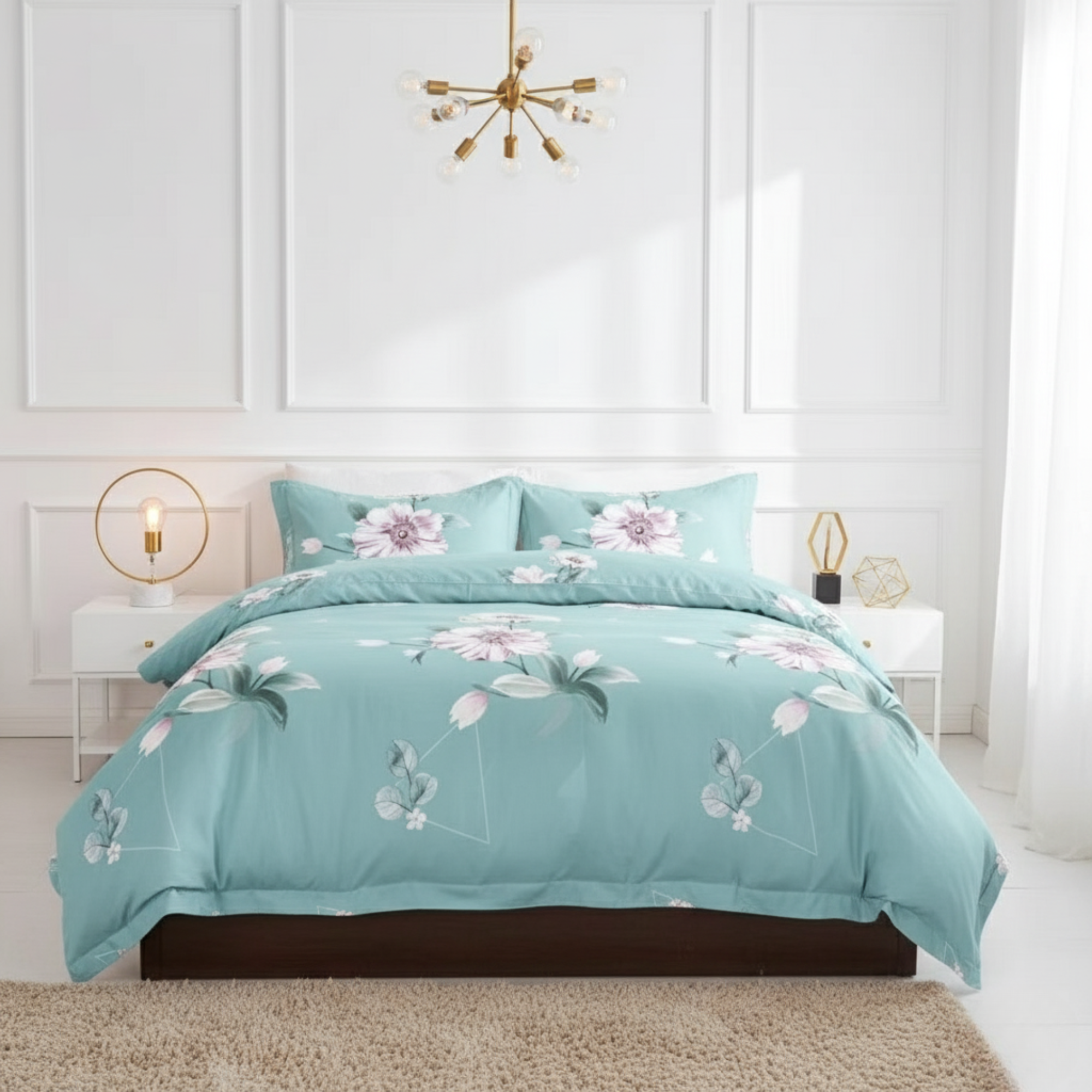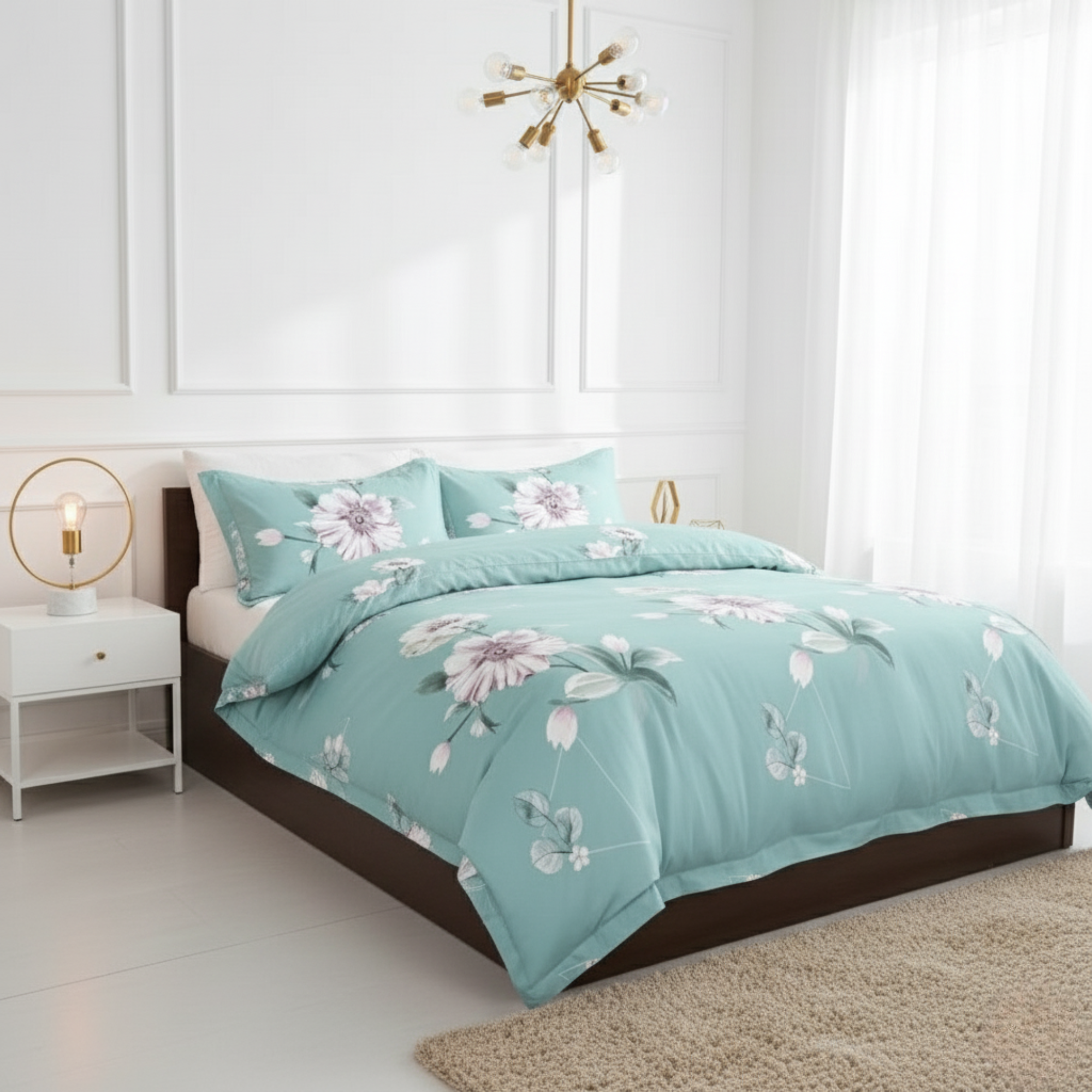 3-PIECE AQUA FLORAL DUVET COVER SET