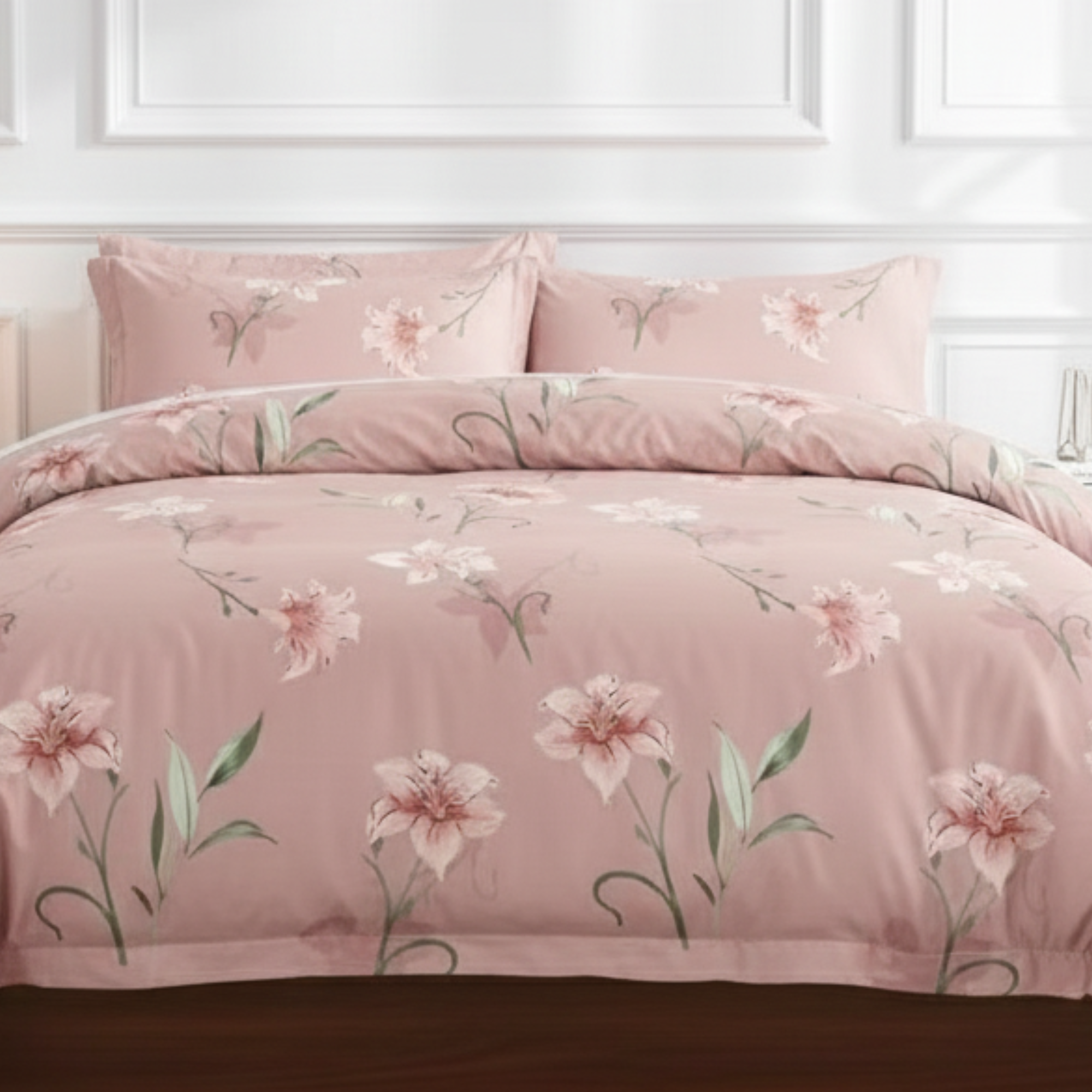 3-PIECE DUSTY ROSE LILY DUVET COVER SET