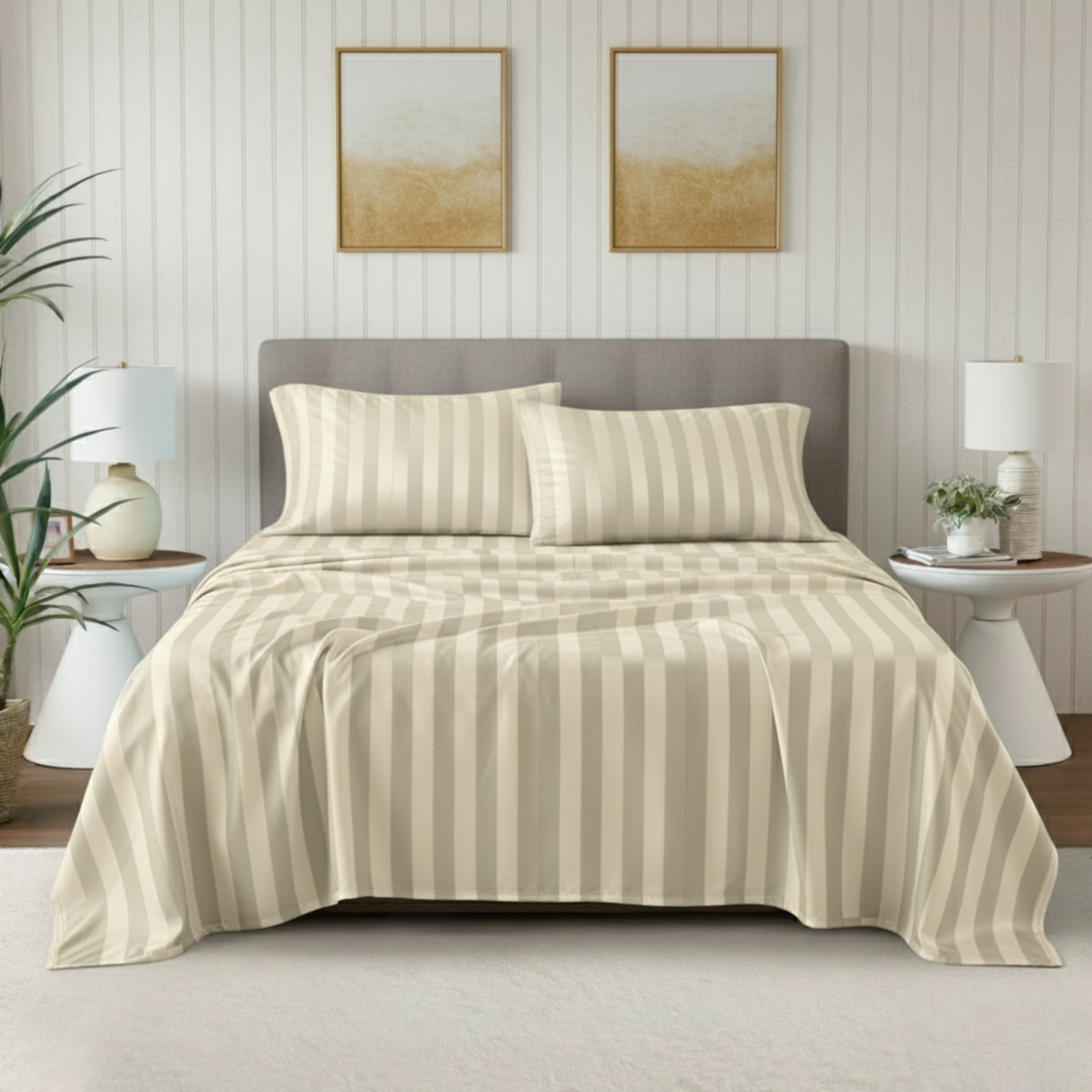 Elevate your bedroom aesthetic and your sleep quality with this perfect blend of comfort and style. Featuring a sophisticated, subtle embossed stripe pattern and a soft, luminous sateen finish, these sheets transform your bed into a serene sanctuary.