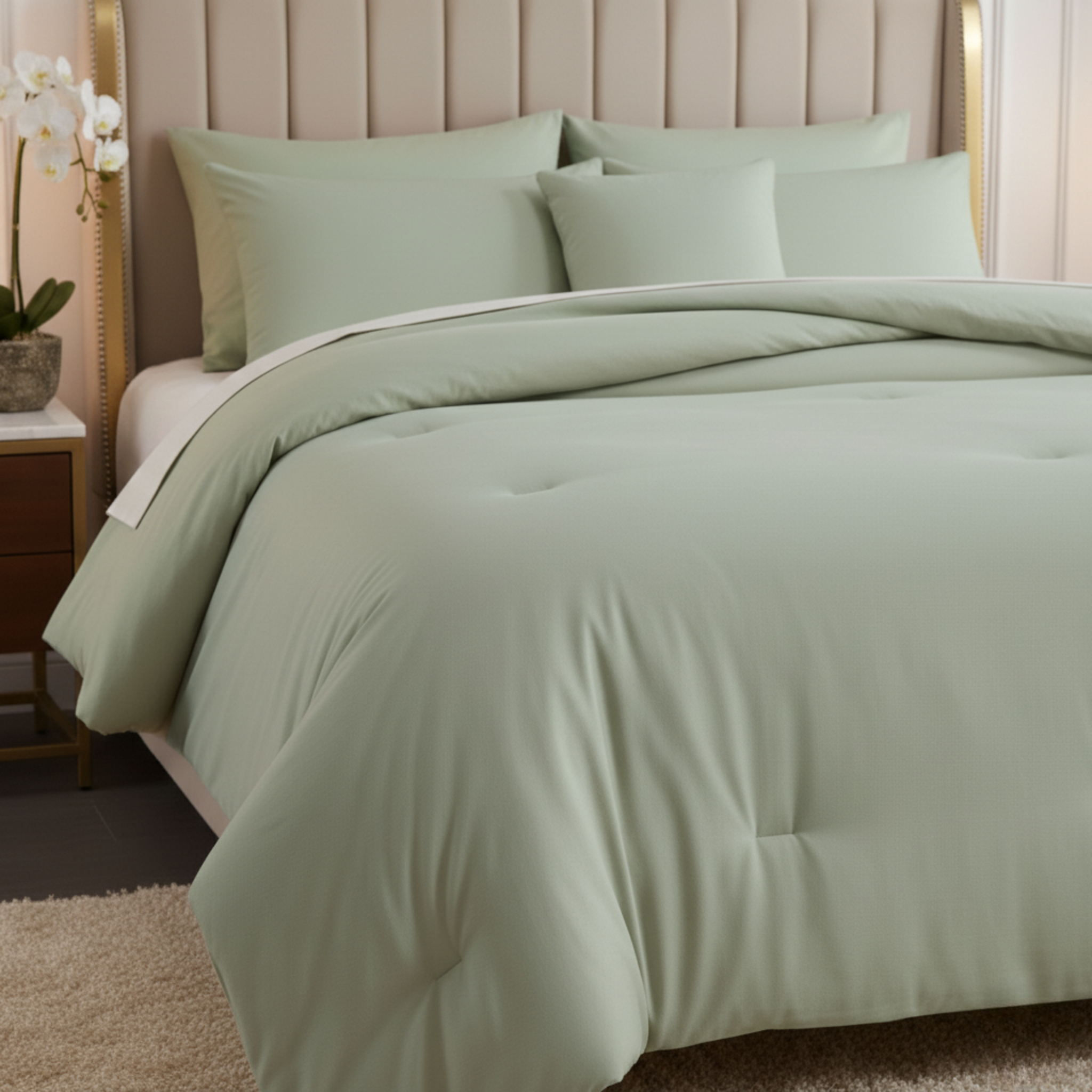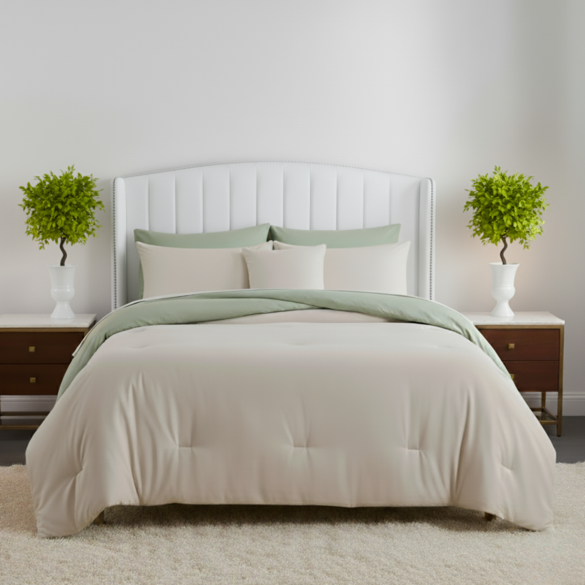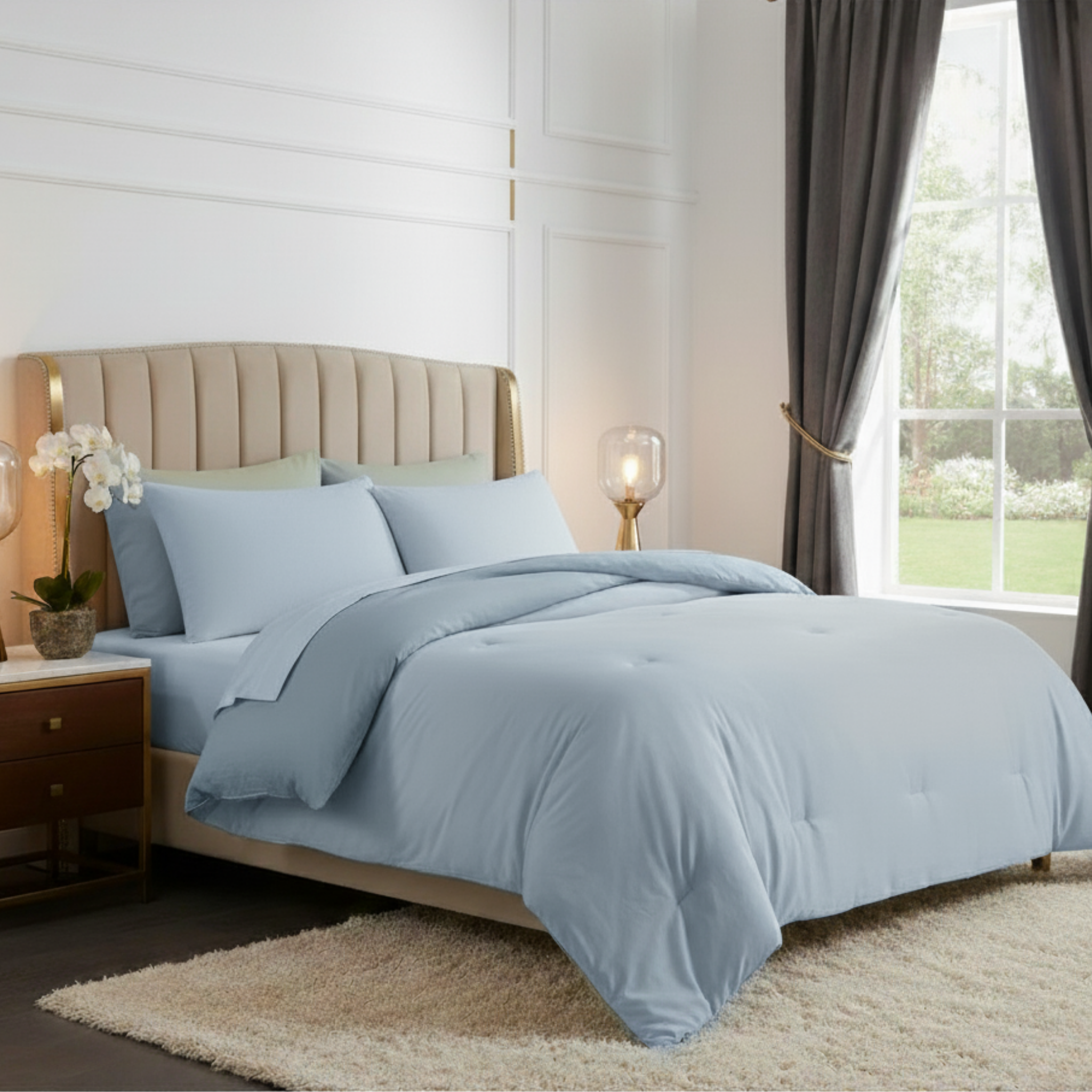 Instantly refresh your bedroom with this complete and versatile reversible comforter set. Designed for comfort and effortless elegance, this set offers two beautiful solid looks in one, allowing you to flip the comforter for a quick change of style. The ultra-soft material provides year-round warmth, while the simple, clean aesthetic effortlessly complements any decor.