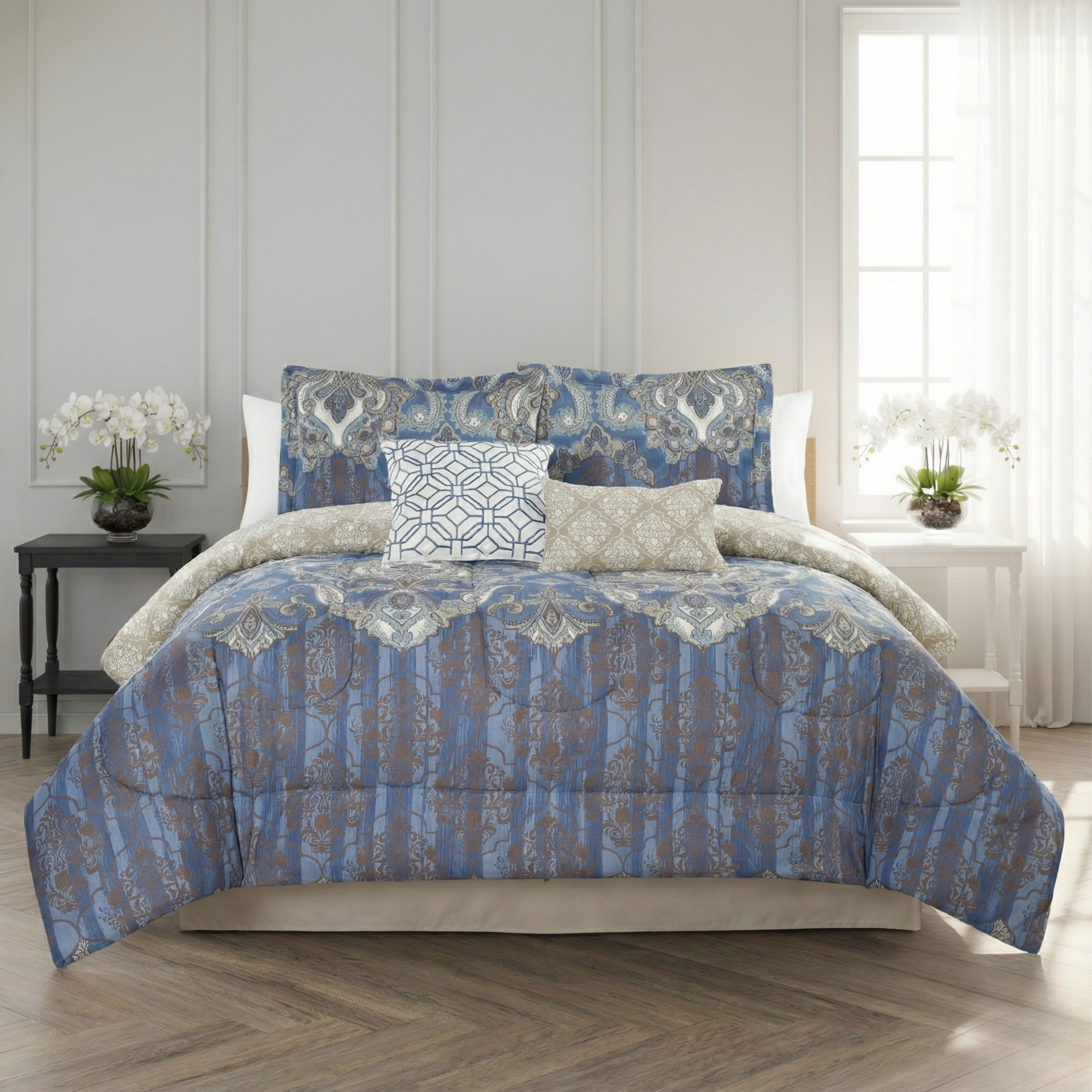 Includes: 1 Comforter, 2 Shams, 2 Decor Pillows.