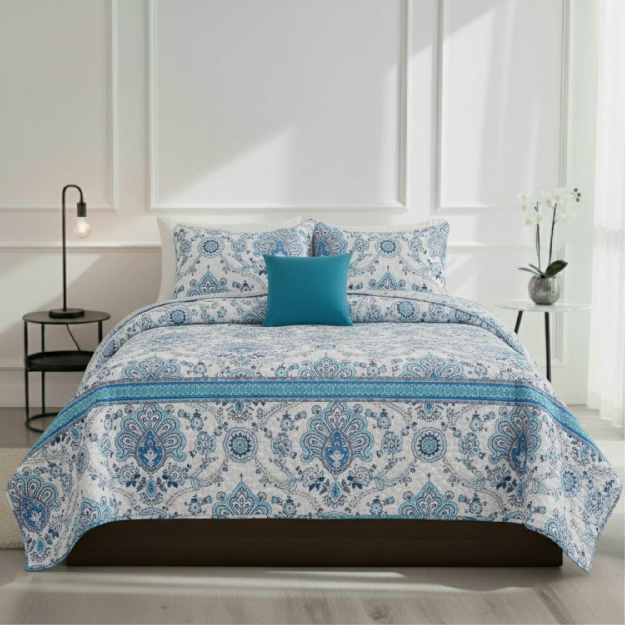 BOHEMIAN CHIC BLUE REVERSIBLE QUILT SET