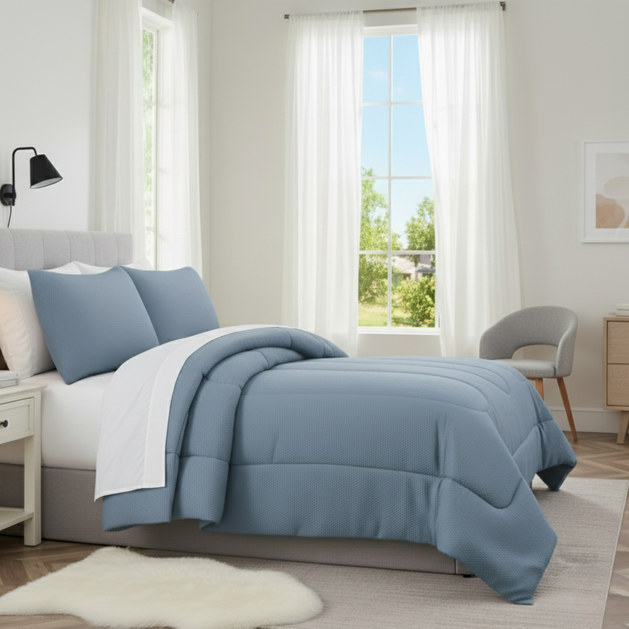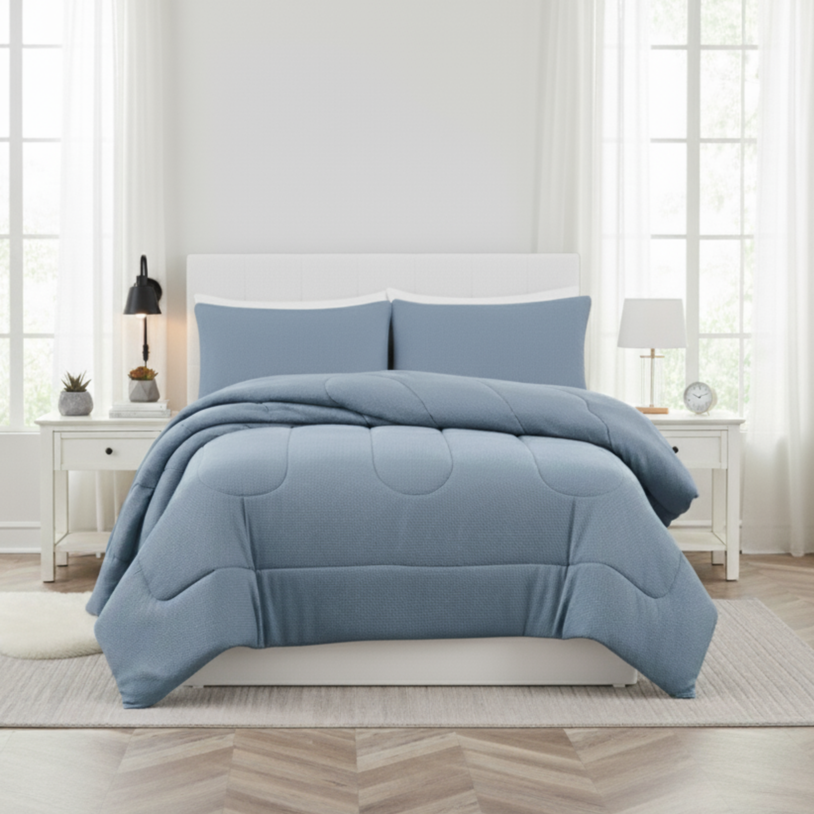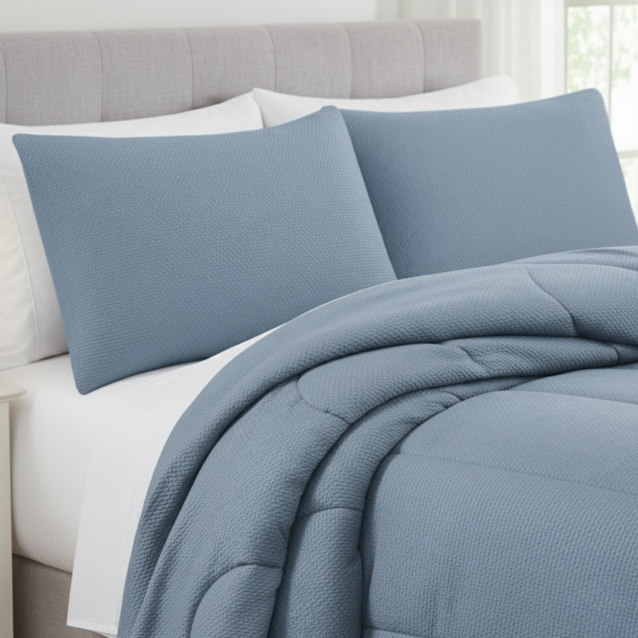 Wrap yourself in the ultimate all-season comfort of this soft, plush comforter set. The Diamond Textured knit finish adds instant depth and modern style to any room. This 3-piece collection includes one cozy comforter and two perfectly coordinating pillow shams, offering an effortless way to elevate your entire sleep space. Plus, it's a stylish and machine-washable bedding essential for practical, everyday luxury.