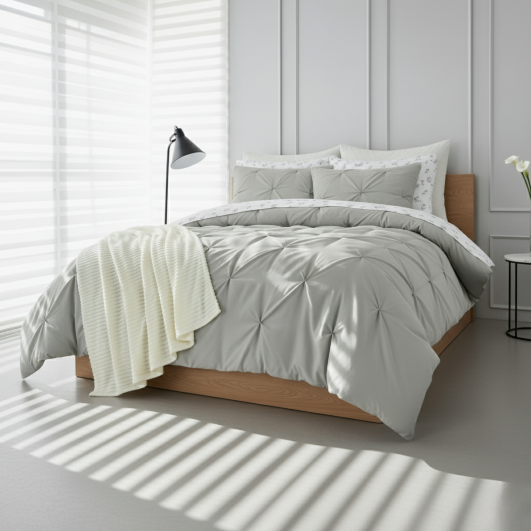 Bring effortless sophistication and serene style to your space with this 5-piece bedding ensemble. This Comforter Set features an elegant, painterly floral design grounded in a warm beige (taupe) base, accented by soft gray, deep sage, and subtle lavender shades. This versatile color palette pairs perfectly with both modern and classic decor.