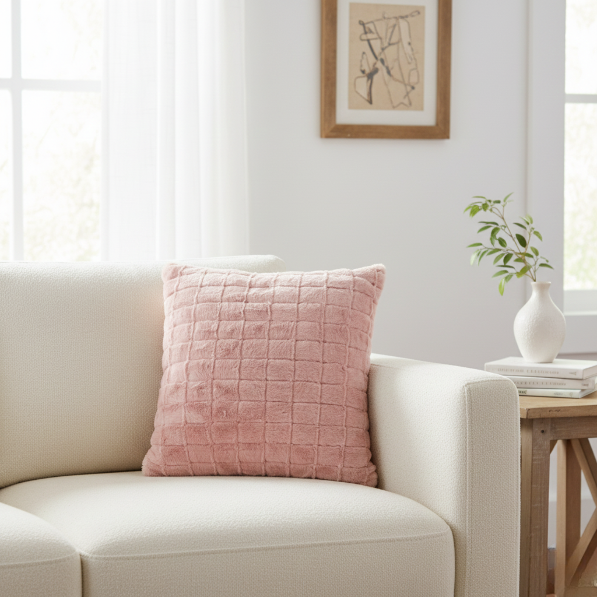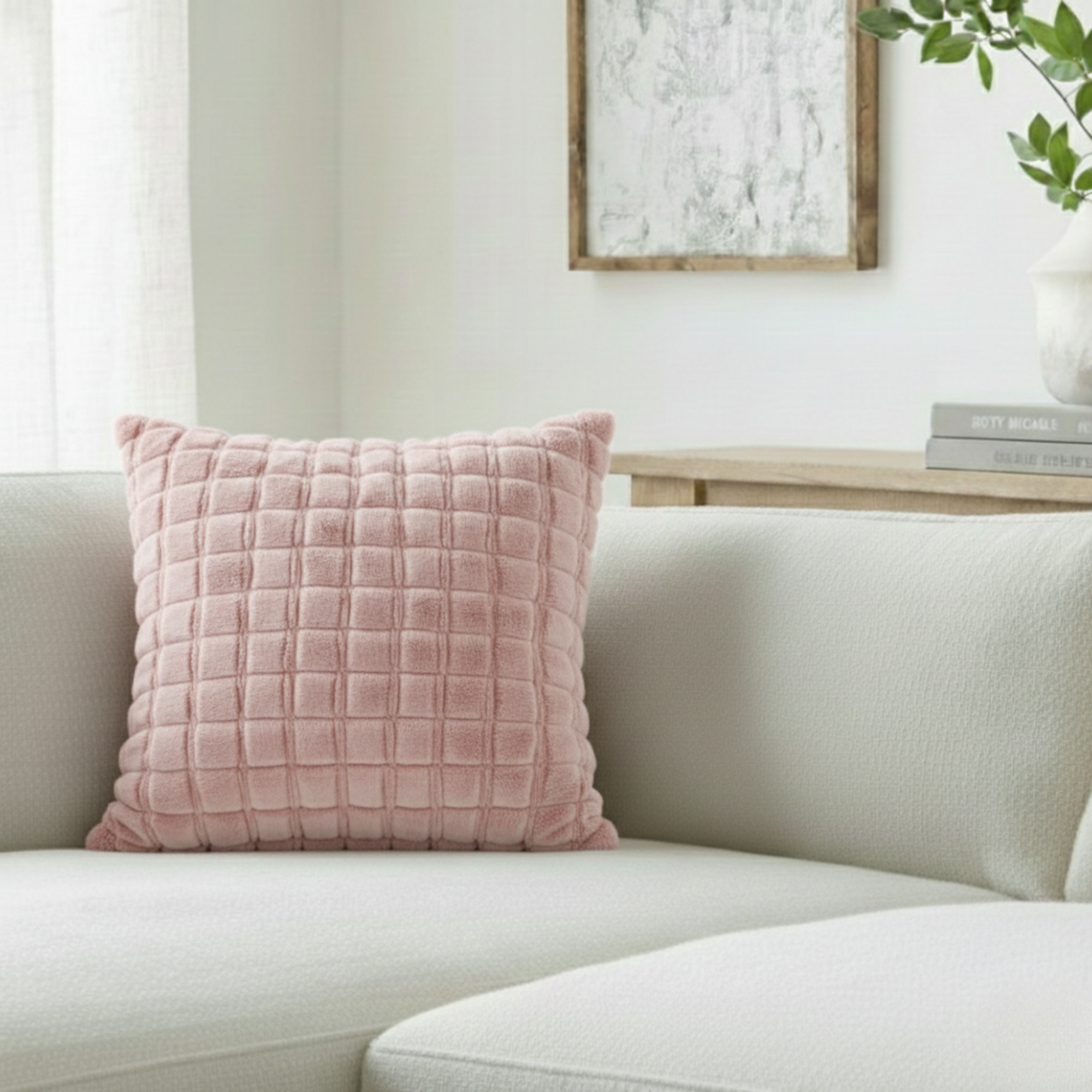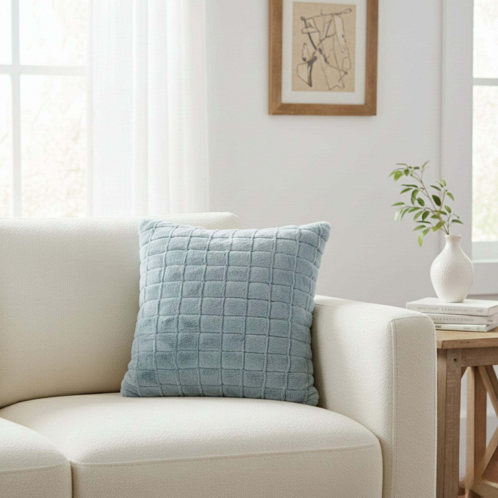 Add depth, warmth, and cozy texture to your living room or bedroom with this chic Grid Textured Decorative Pillow. The neutral color and tactile surface make it an effortless accessory to layer into any contemporary or rustic setting.