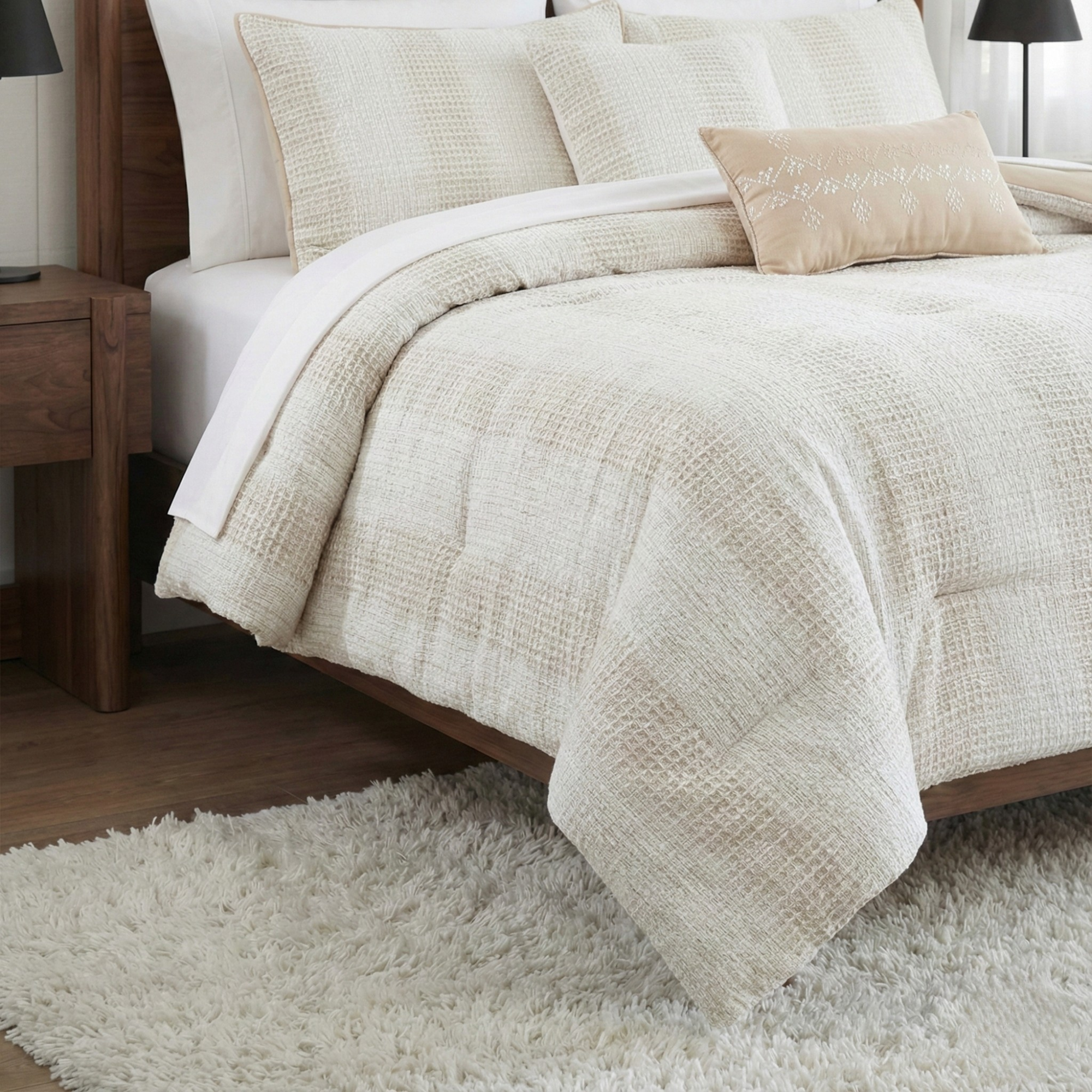 WAFFLE WEAVE STRIPE COMFORTER SET