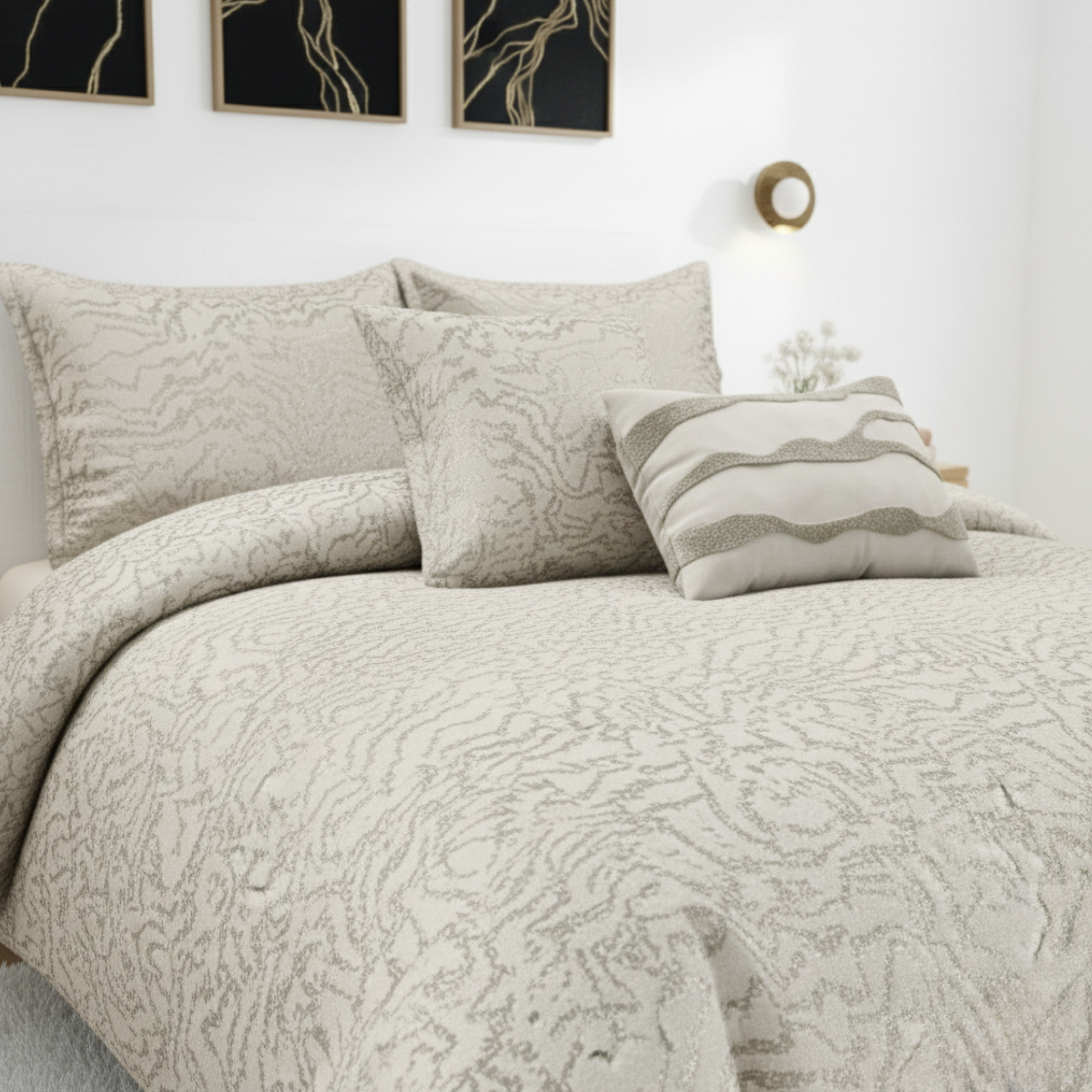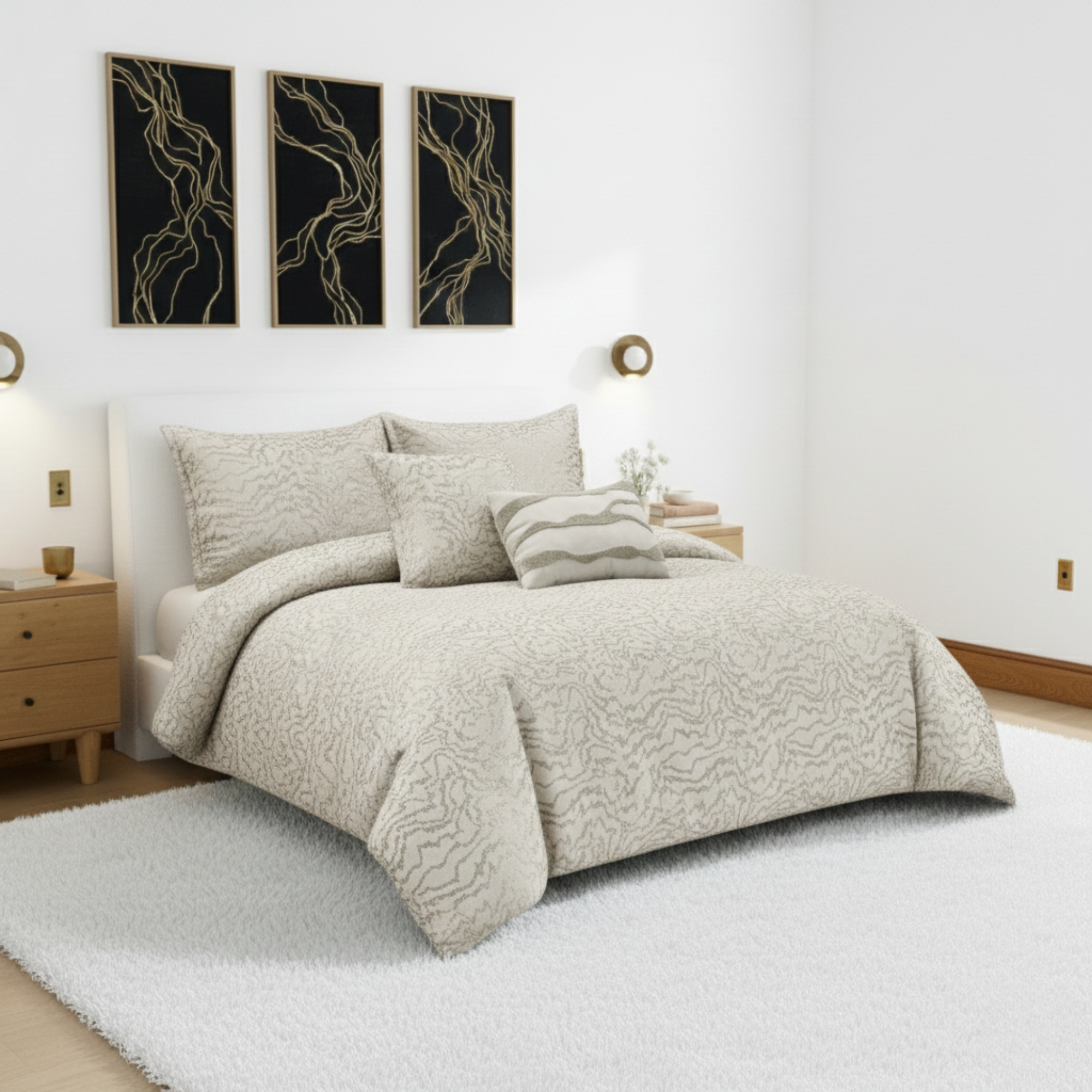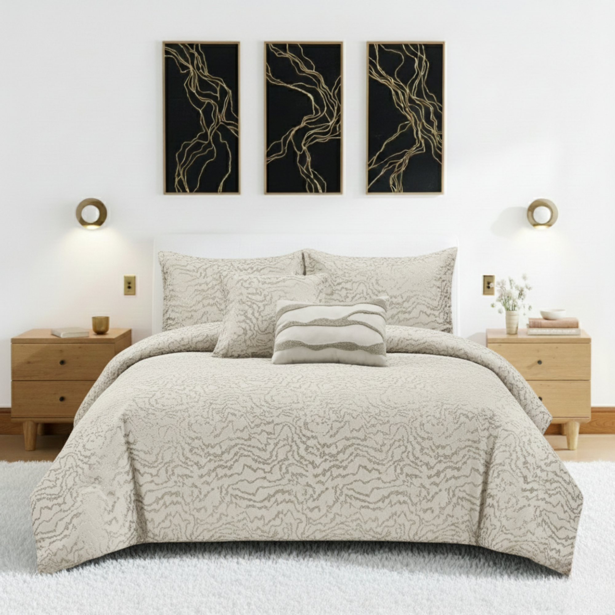 Achieve a chic, sophisticated, and instantly layered look with this luxurious 5-Piece Zebra Stripe Comforter Set. Featuring a calming, neutral color palette and a dynamic, high-end pattern, this collection brings subtle texture, contemporary flair, and exceptional comfort to your bedroom.