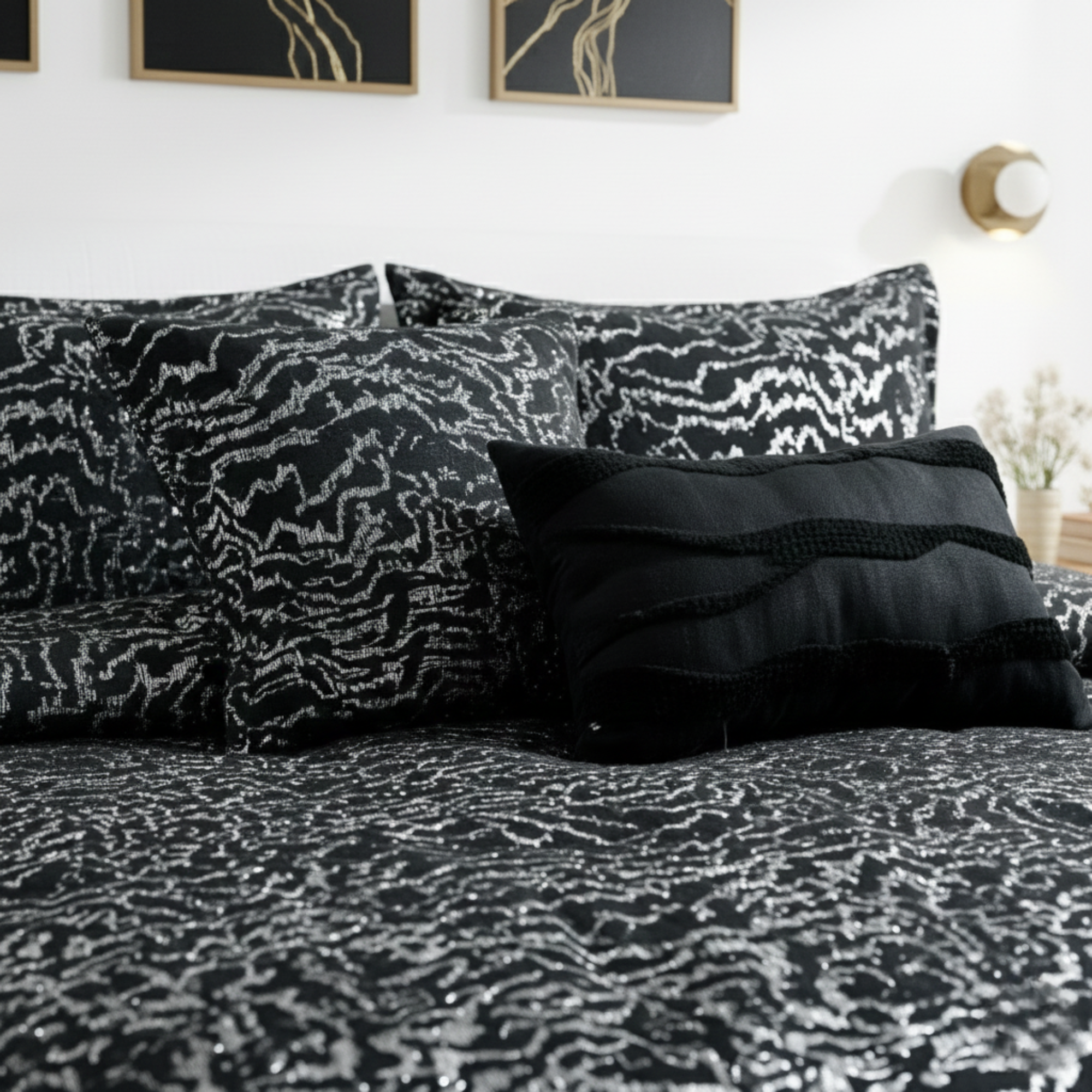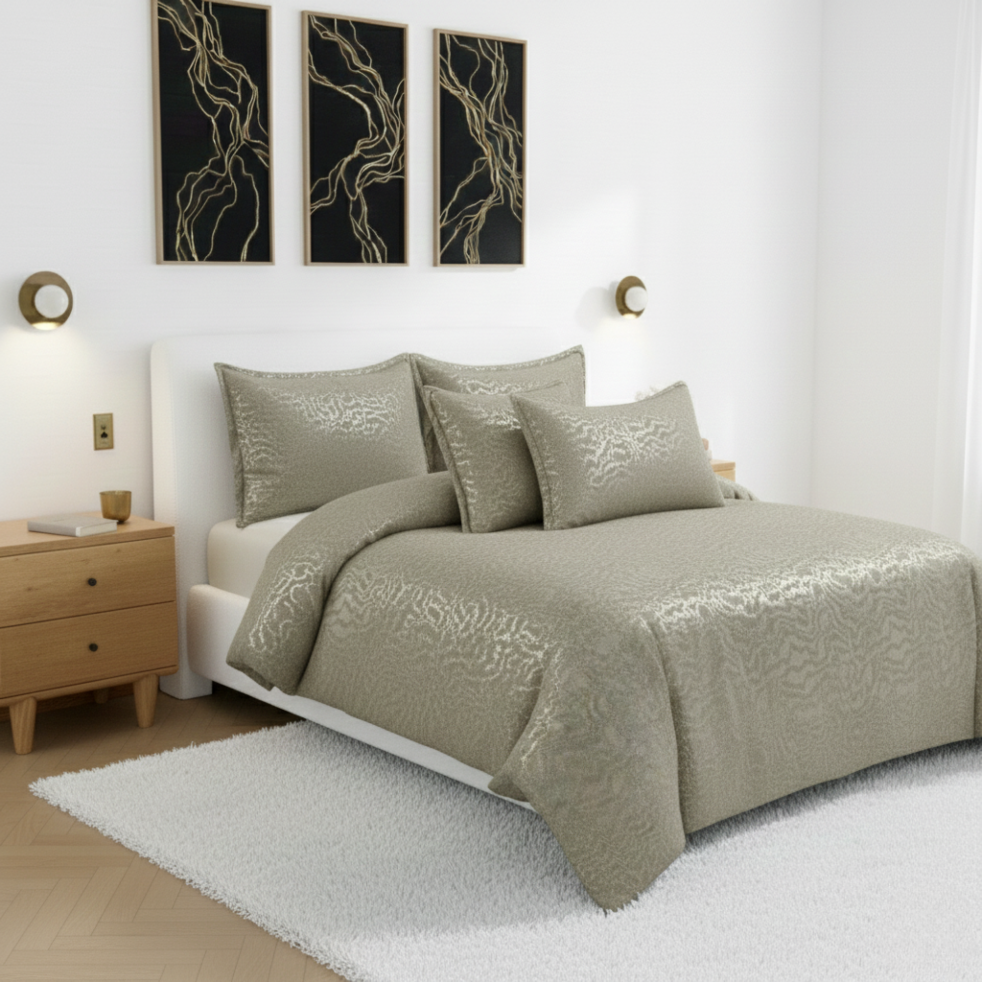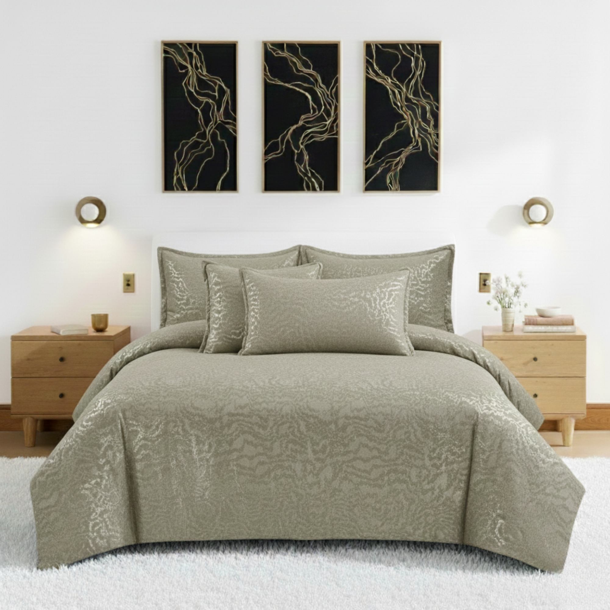 Achieve a chic, sophisticated, and instantly layered look with this luxurious 5-Piece Zebra Stripe Comforter Set. Featuring a calming, neutral color palette and a dynamic, high-end pattern, this collection brings subtle texture, contemporary flair, and exceptional comfort to your bedroom.