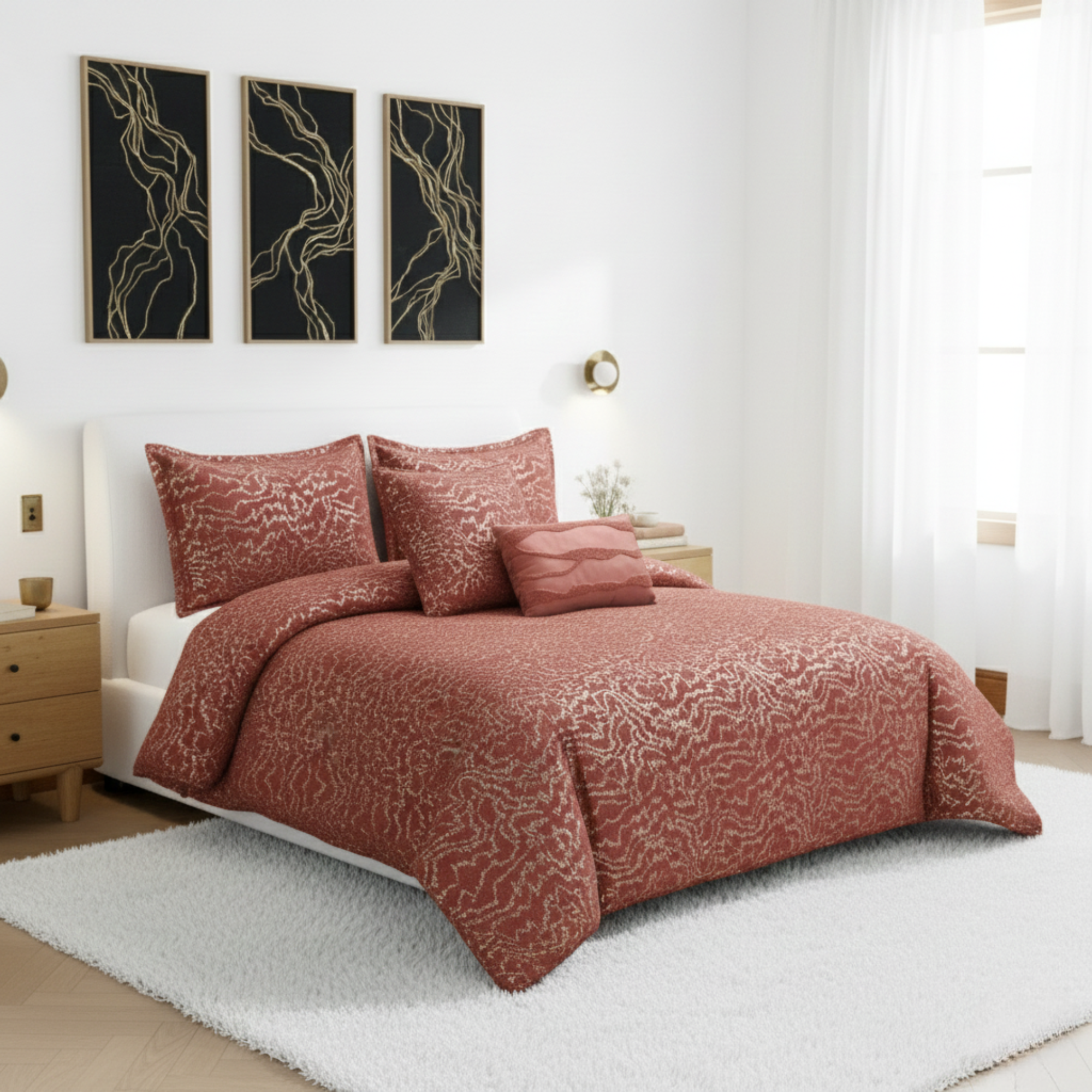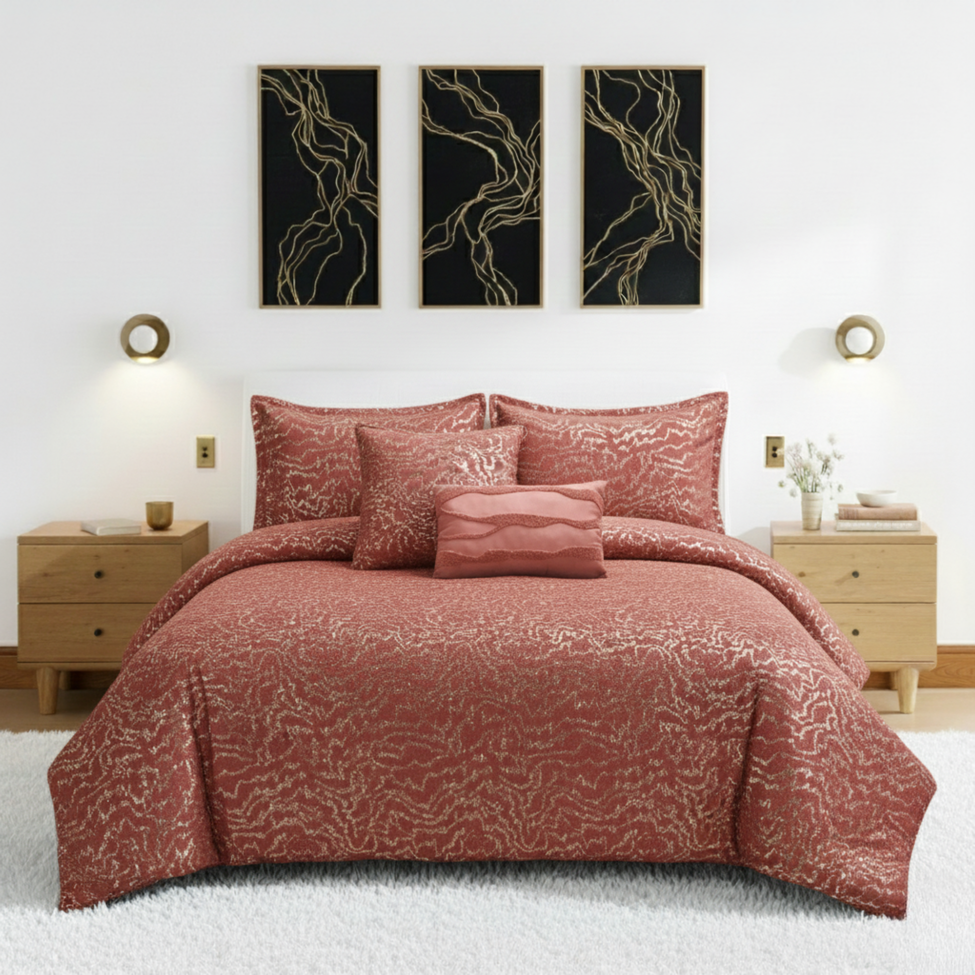 Includes: 1 Comforter, 2 Pillow Shams, 2 Decor Pillows.